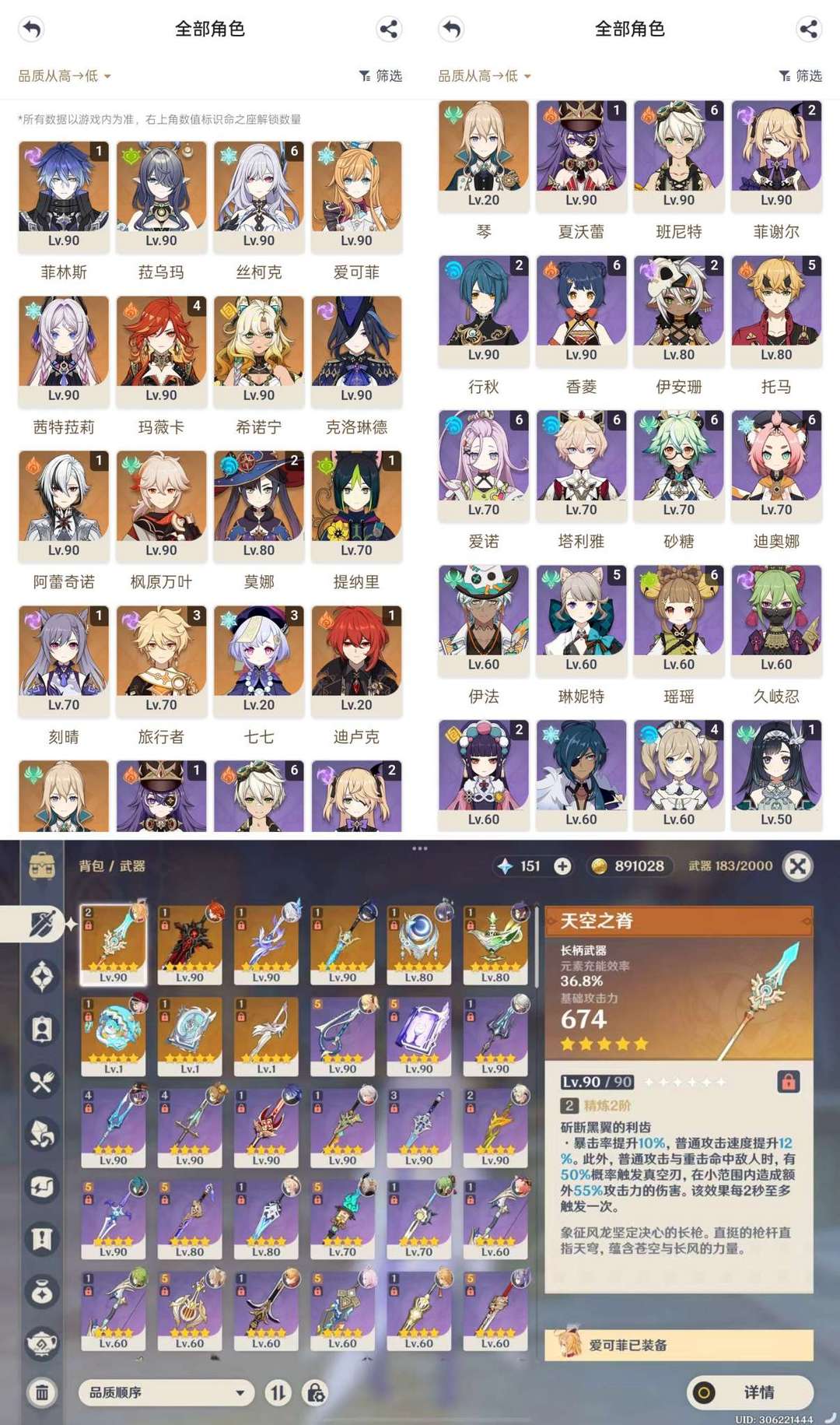 一命菲林斯❀满命丝柯克+专武❀88金❀满命基尼奇散兵一斗夜兰草神妮露神