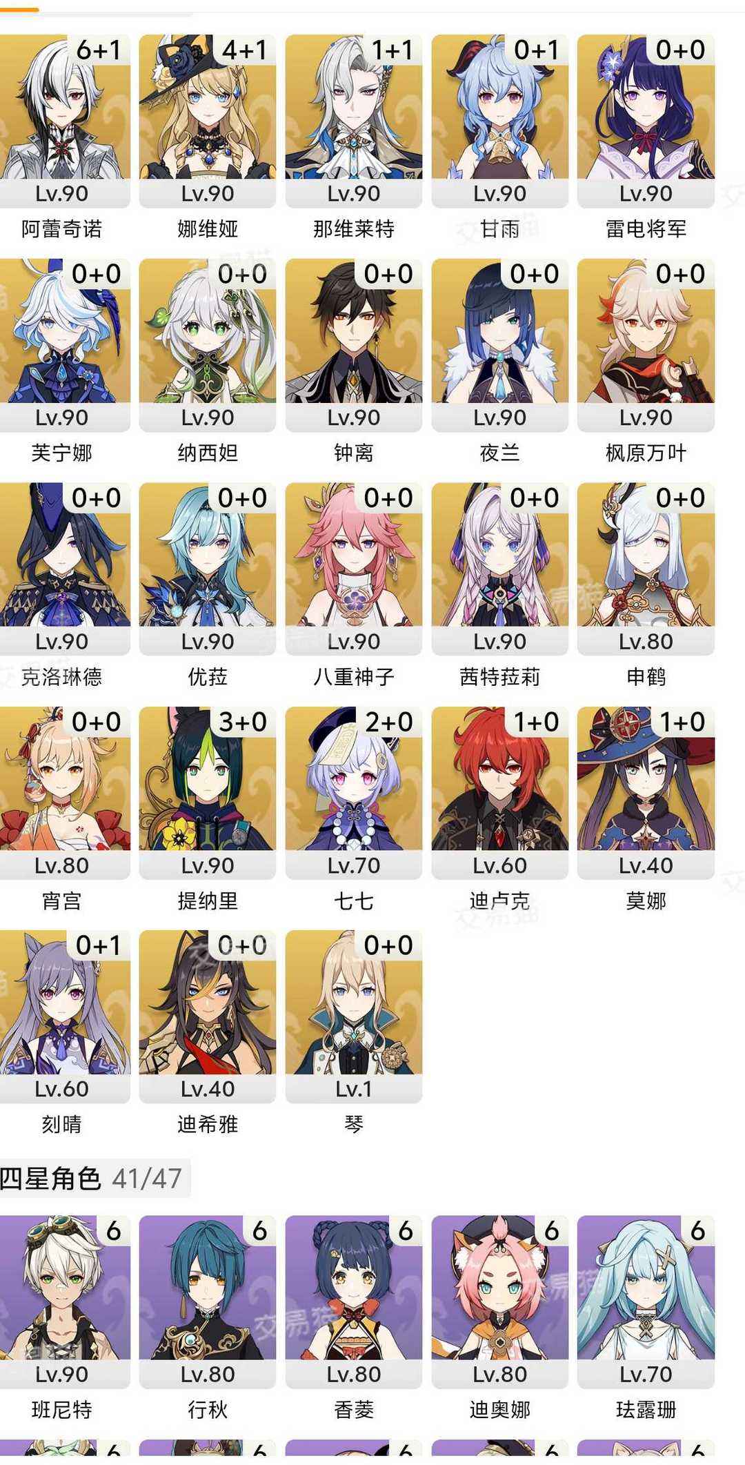 六神全齐满命仆人四命娜薇娅一命龙王雷神草神芙芙茜特拉莉夜兰万叶