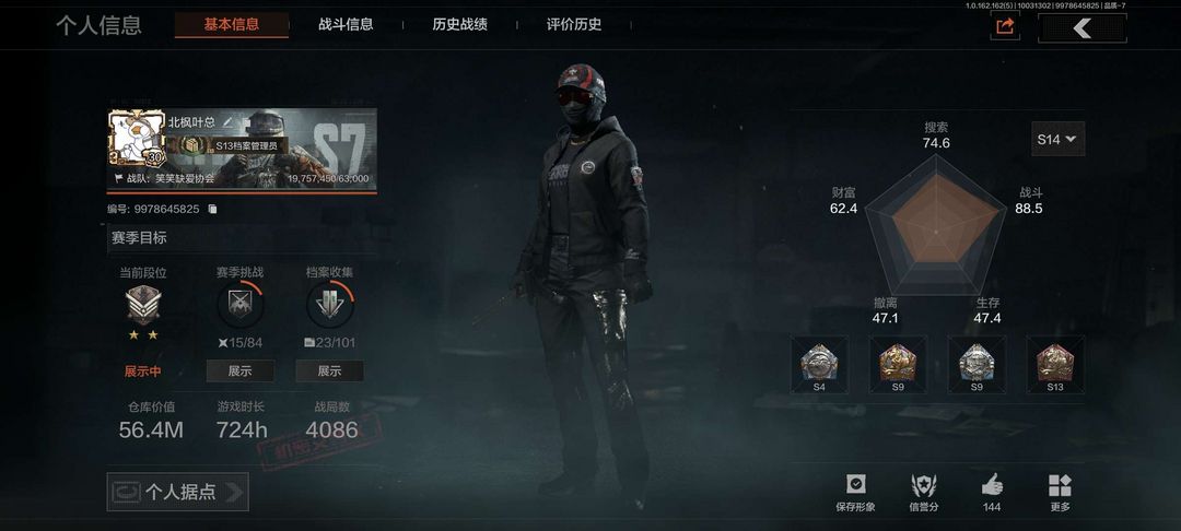 有一些免费送的枪械皮肤和赛季衣服。禁止利用账号进行开挂、使用辅助违规软件诈骗等违规操作。拿出来约250万了(金库上锁了,用不了)