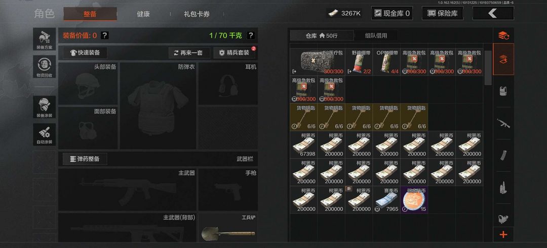 暗区突围千万柯恩币账号,欧皇号,刚刚出机密,柯恩币326万,仓库价值330多万,有十多把满改枪械,有钥匙,有六格保险箱,有很多枪皮,战斗分高,别做出一切减少信誉分的游戏行为,别开挂,别毁号后撤单!欢迎老板上号!