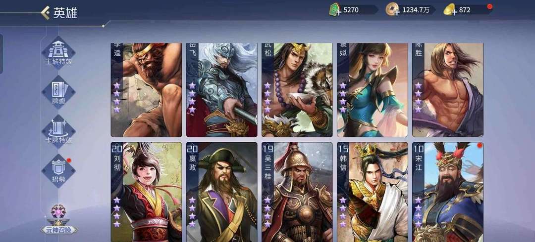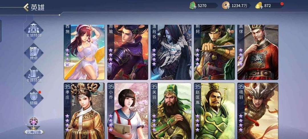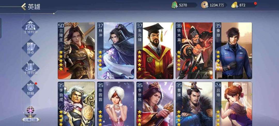 五星兰陵王四星周瑜四星孝庄还有很多五星英雄