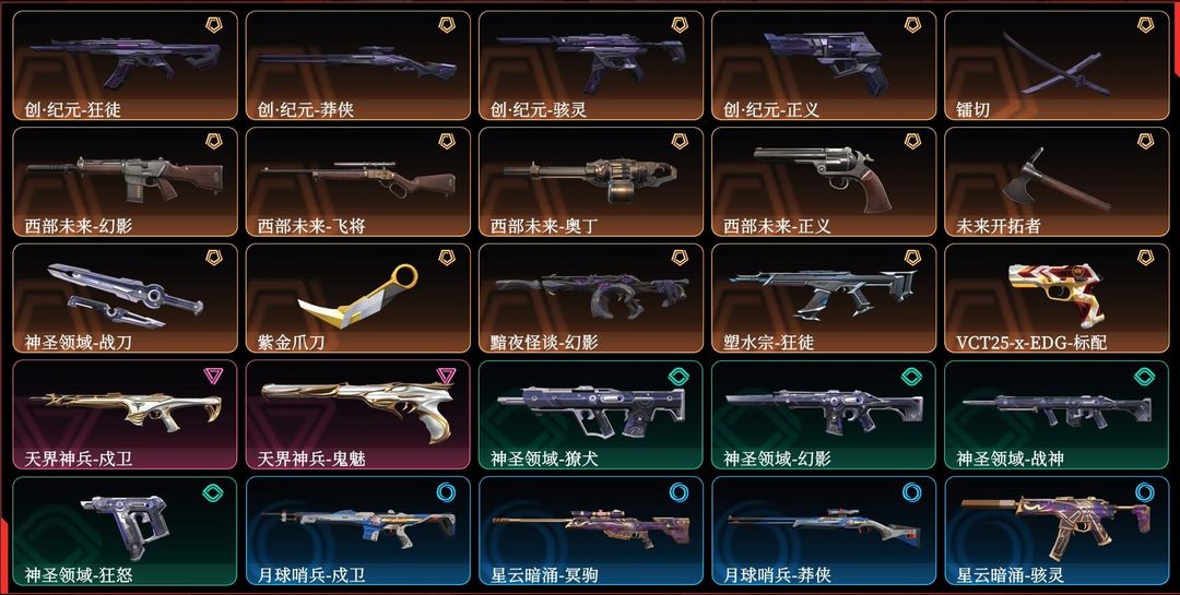 可排✅西部未来⚡镭切创纪元⚡塑水宗狂徒⚡黯夜怪谈幻影⚡天界神兵⚡VCT25标配⚡紫金爪刀