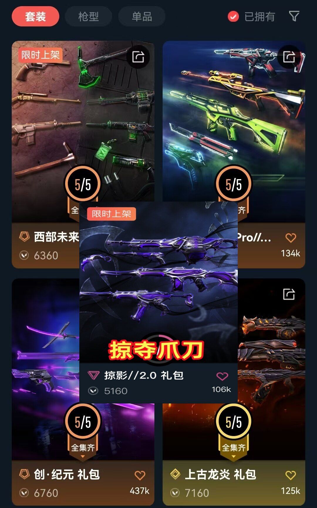 可排✅19万库存2000R⭐掠夺爪刀影钩离子2.0ak西部未来套⭐创纪元镭切龙炎显卡2套⭐般若塑水宗