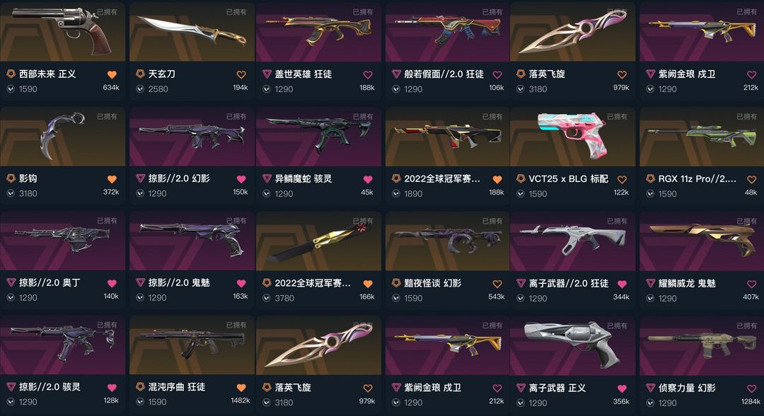 可排✨掠夺爪刀影钩✨22冠军套✨落英飞旋天玄刀✨猴子混沌序曲狂徒✨黯夜怪谈侦查力量✨西部未来