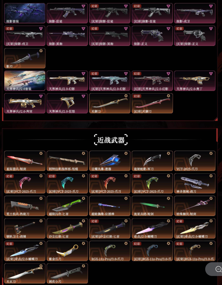 可排满特效✨2125冠军掠影神兵套vct爪刀显卡3.0爪剥皮刀✨混沌塑水盖亚紫金虚空黯夜洪荒全息堕天