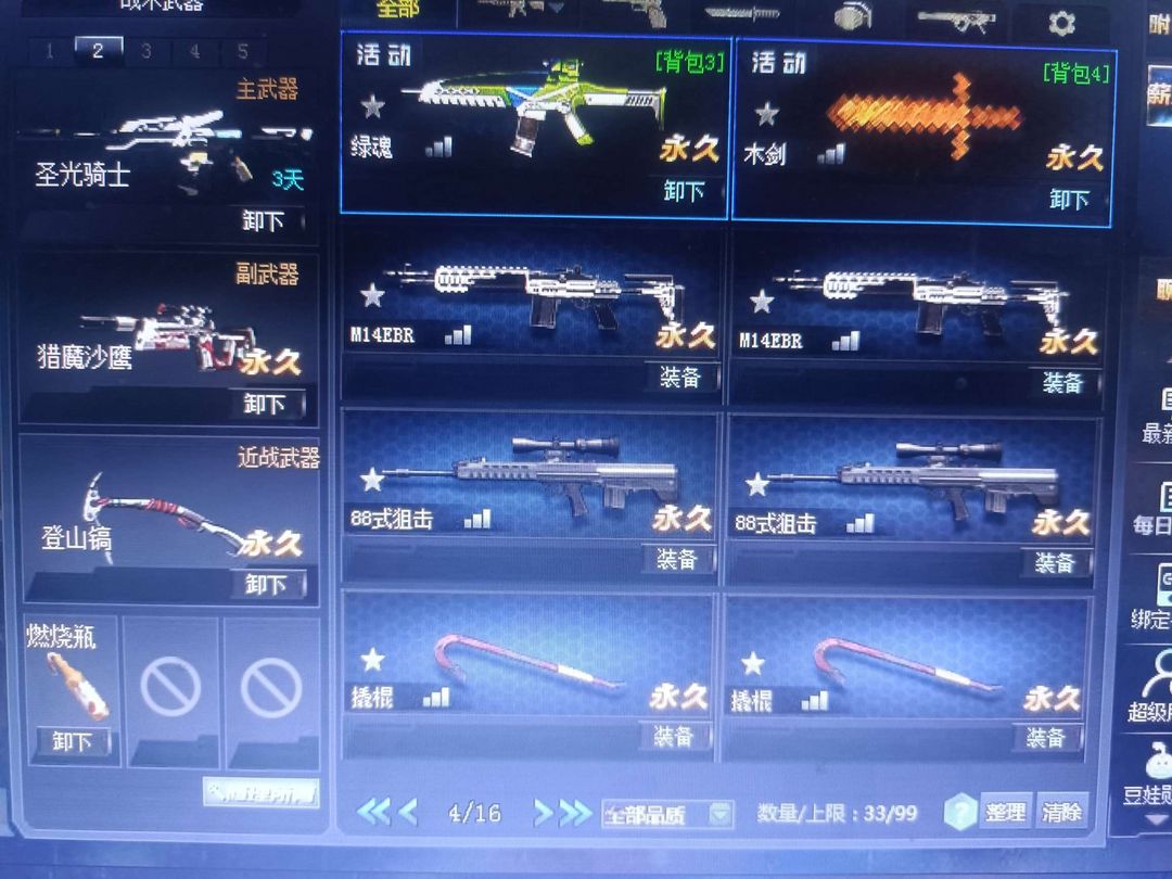 有瑶光起源绿魂木剑还有激光剑毁灭者登山稿,还有一些沙鹰,还有期限黄金武器和英雄武器,挑战角色恶灵等