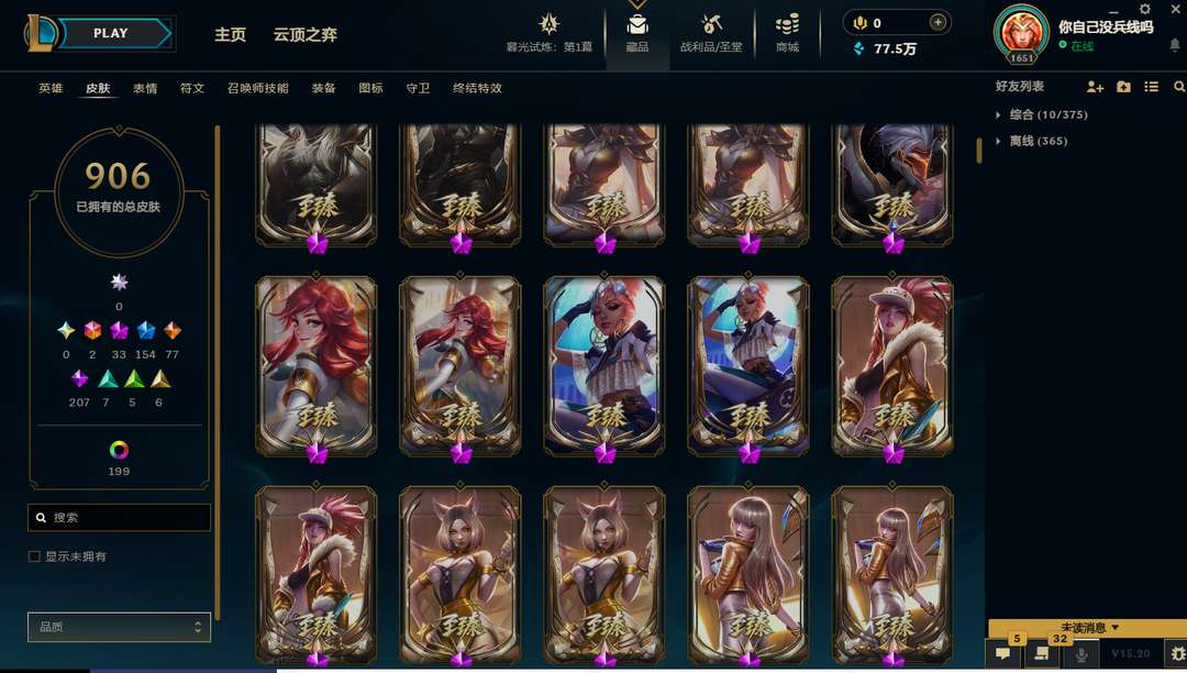 ❤8000皮肤 【联盟四区】铂金可排位⚡绿龙瞎⚡双至臻卡莎⚡青年瑞兹⚡斩星摄魂:青铜白银【真实黑铁】