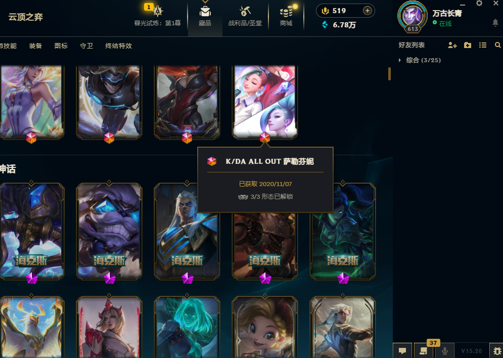 艾欧尼亚2000皮肤铂金可排位7终极萨勒芬妮全套KDA赵云吕布卧虎美猴王全套冠军SKT-EDG-IG