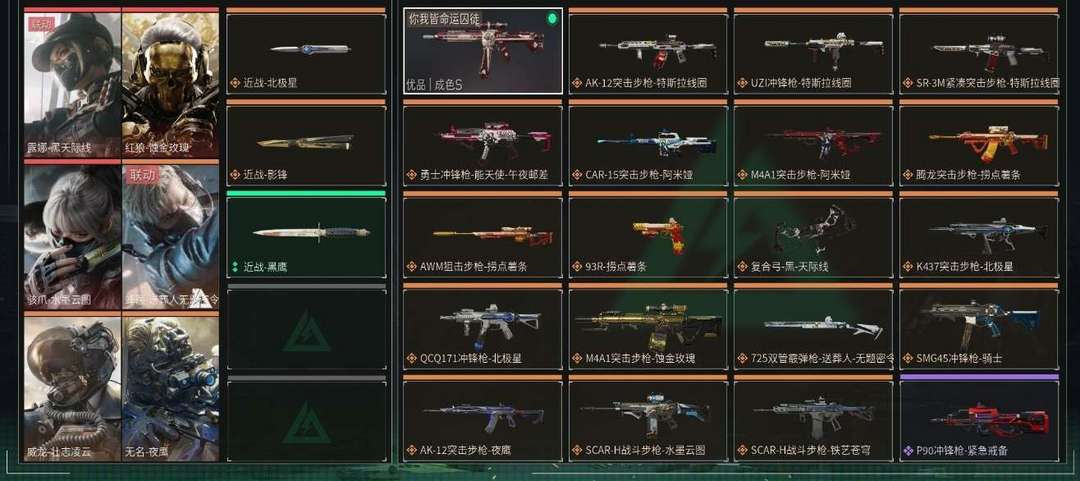 皮肤号 全红皮双刀 露娜天际线 红狼蚀金玫瑰 水墨云图 优品s命运 北极星套 蝴蝶刀套 满体满负重
