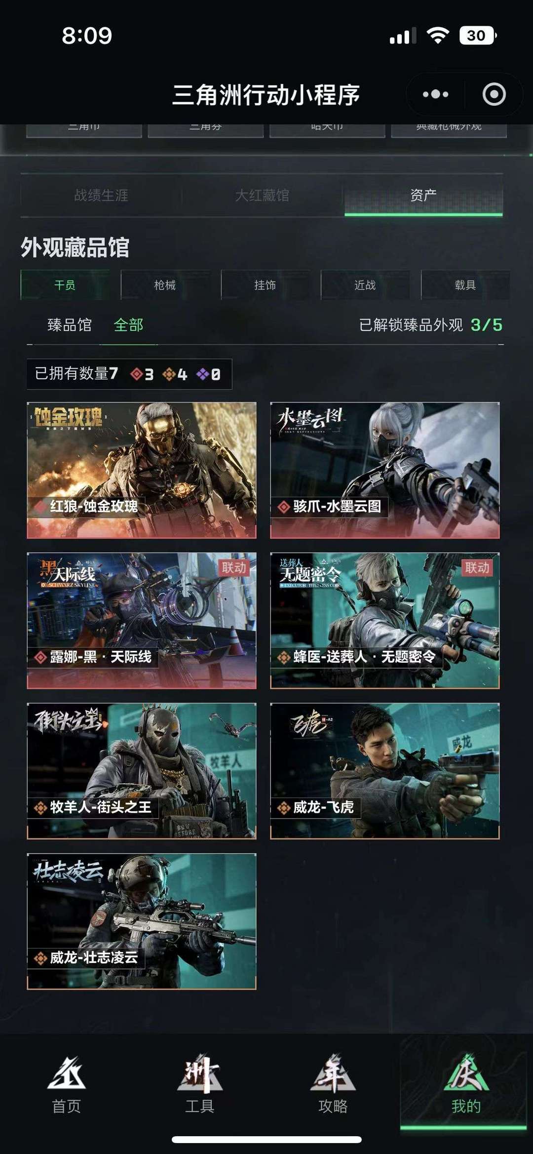 7干员3红1刀27款传说武器,蚀金玫瑰,水墨云图,飞虎,露娜