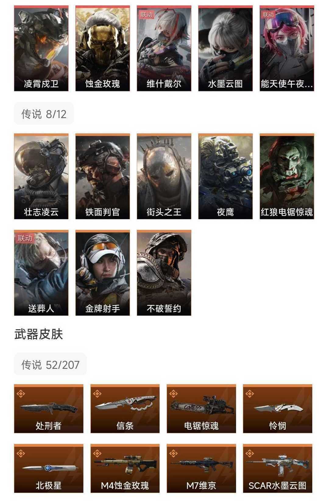 皮肤号 凌霄戍卫13干员5红,北极星,怜悯,52款传说枪皮,蚀金玫瑰,维什戴尔,水墨云图