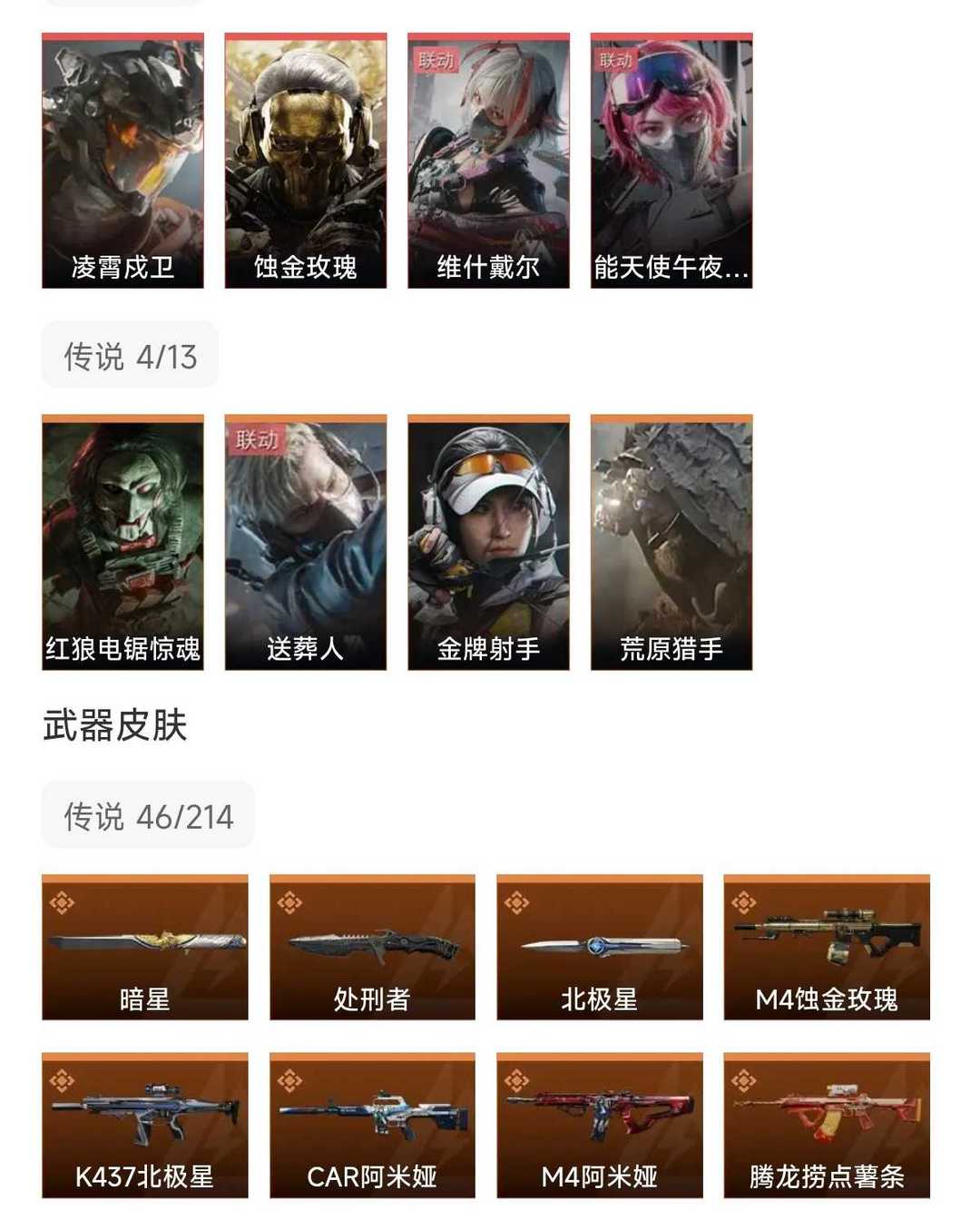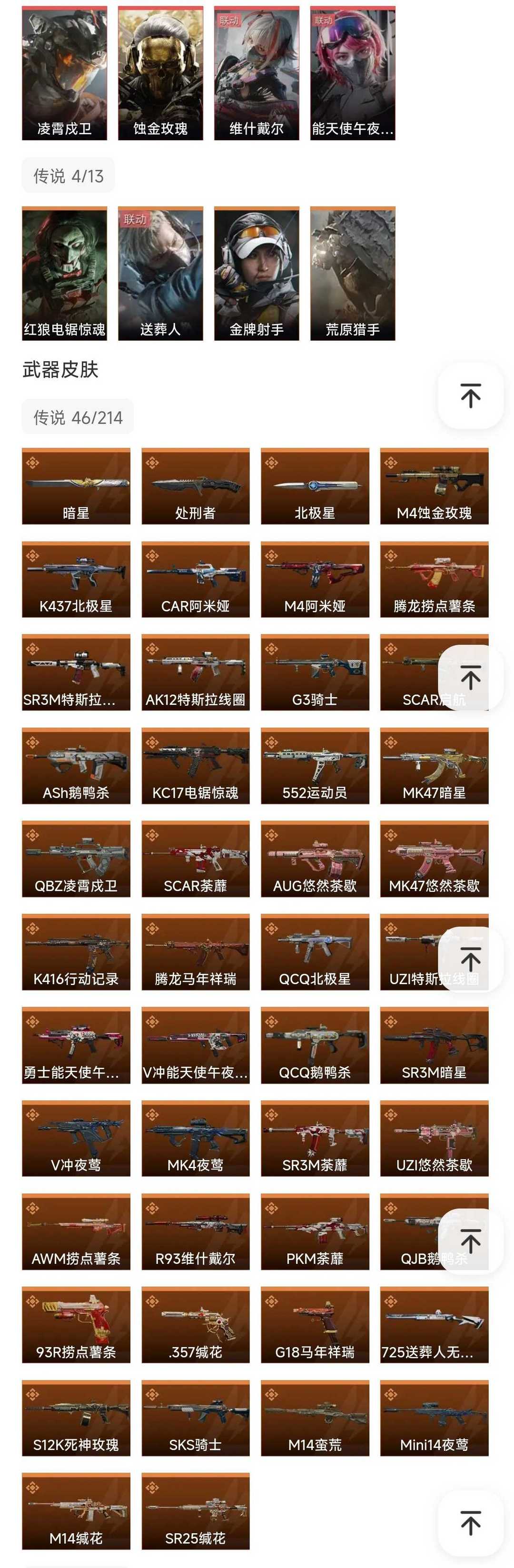 皮肤号 高比例暗星北极星4红凌霄茂卫,蚀金玫瑰,维什戴尔,女医,46款传说枪皮