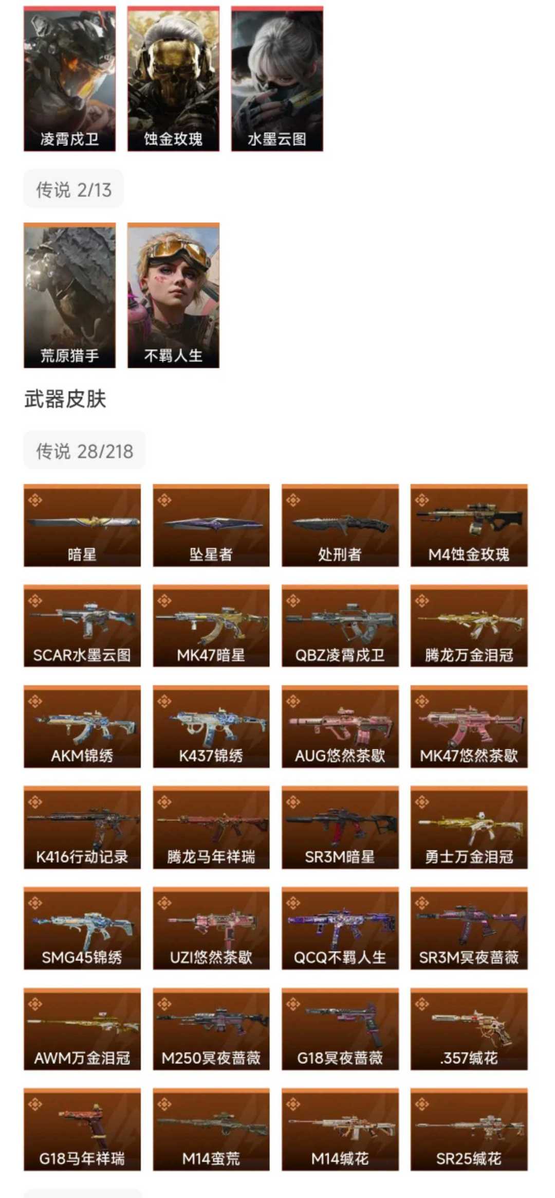 皮肤号 坠星者暗星凌霄茂卫,蚀金玫瑰,水墨云图,28款传说枪皮