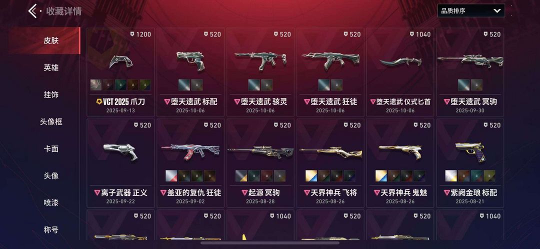 满级vct/堕落套/紫金套/满级盖亚狂徒/满级侦查幻影/离子正义/天界鬼魅/起源狙/开挂必起诉