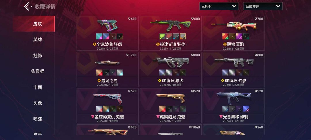 威龙之刃、剥皮小刀满✅炫781幻影、獠犬满✅全炫显卡、威龙狂徒满✅炫醒狮冥驹满✅炫全息狂怒、漂移蜂刺