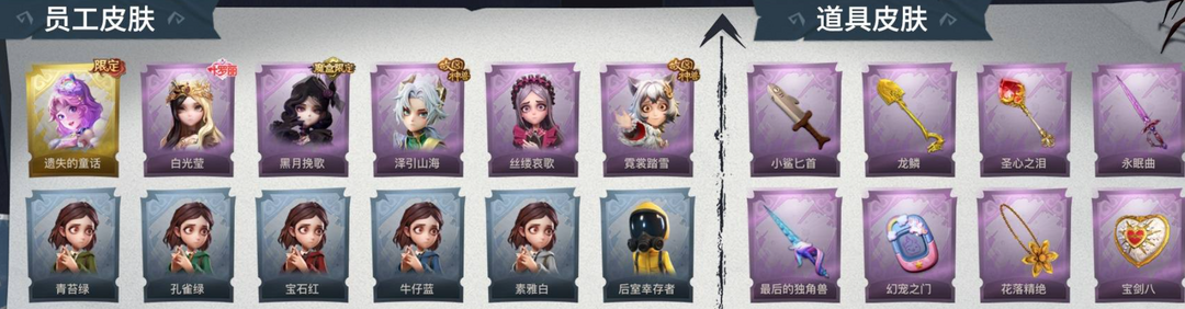 1金5紫【遗失的童话】霓裳踏雪、丝缕哀歌、泽引山海、白光莹、黑月挽歌,小鲨匕首、龙鳞、圣心之泪、永眠曲、最后的独角兽、幻宠之门、花落精绝、宝剑八、心跳摇、小雨摇、舞台中心