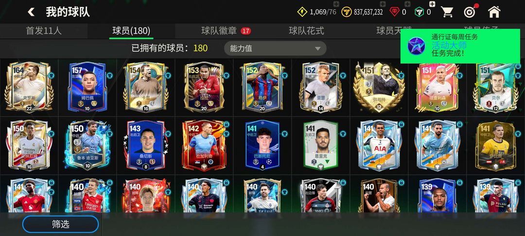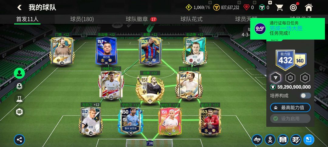 fc足球世界432级有164级克罗斯157级姆巴佩154级卡恩等许多一百五十多级的