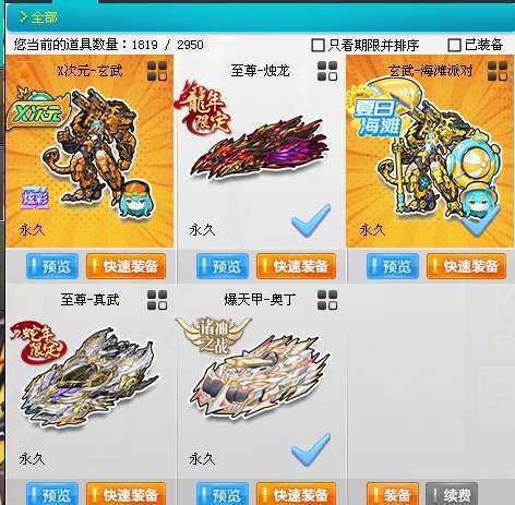 9S【泳装女衣柜】至尊真武〓X次元玄武-海滩派对〓至尊盘龙-烛龙〓爆天甲奥丁〓3稀世27套悬浮动作