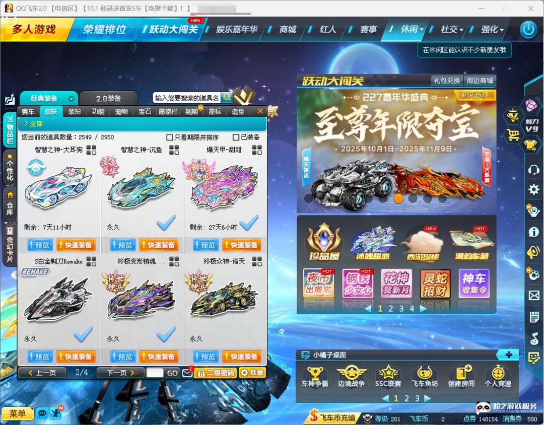 【皮肤】终麦-屠龙/至尊-烛龙/食黑域电魔-玄冥/至尊-玉麒麟/至尊-神.奥丁/爆天雪-小雪/智慧之神大耳狗/智慧之神-沉鱼/爆天甲-甜甜/s白金剃刀Remake/终极变形销魂.../终极众神-倚天/终极众神-吕布/玛莎拉蒂-溢彩/雷诺-幻夜/悟空齐天大圣/玄甲.众神吕布 【宠物】赤焰烛龙/星辉龙王/雪凝公主/玉麒麟/美人鱼/浴血火凤/仙宫灵鹿/考拉公主/森之精灵/青丘仙狐/飞虎王/雪豹/甜心护士小爱/纪念版飞虎王/招财猫/冰魄白虎/熊星人小宝/雪人布鲁/吉利鼠小弟/月蛾仙/笔墨丹青/幻海小灵主/飞翔机器人