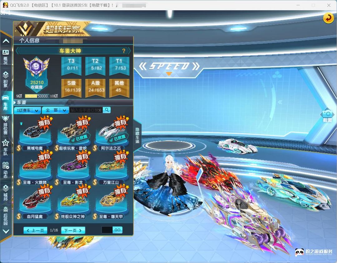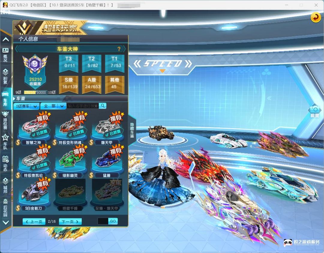 等级201,魅力83832,16S车,7T1车,5T2车,24A车,17皮肤,33宠物,紫钻V4,详情看图。 【等级】201 【魅力】83832