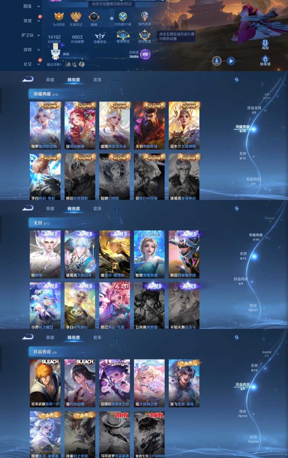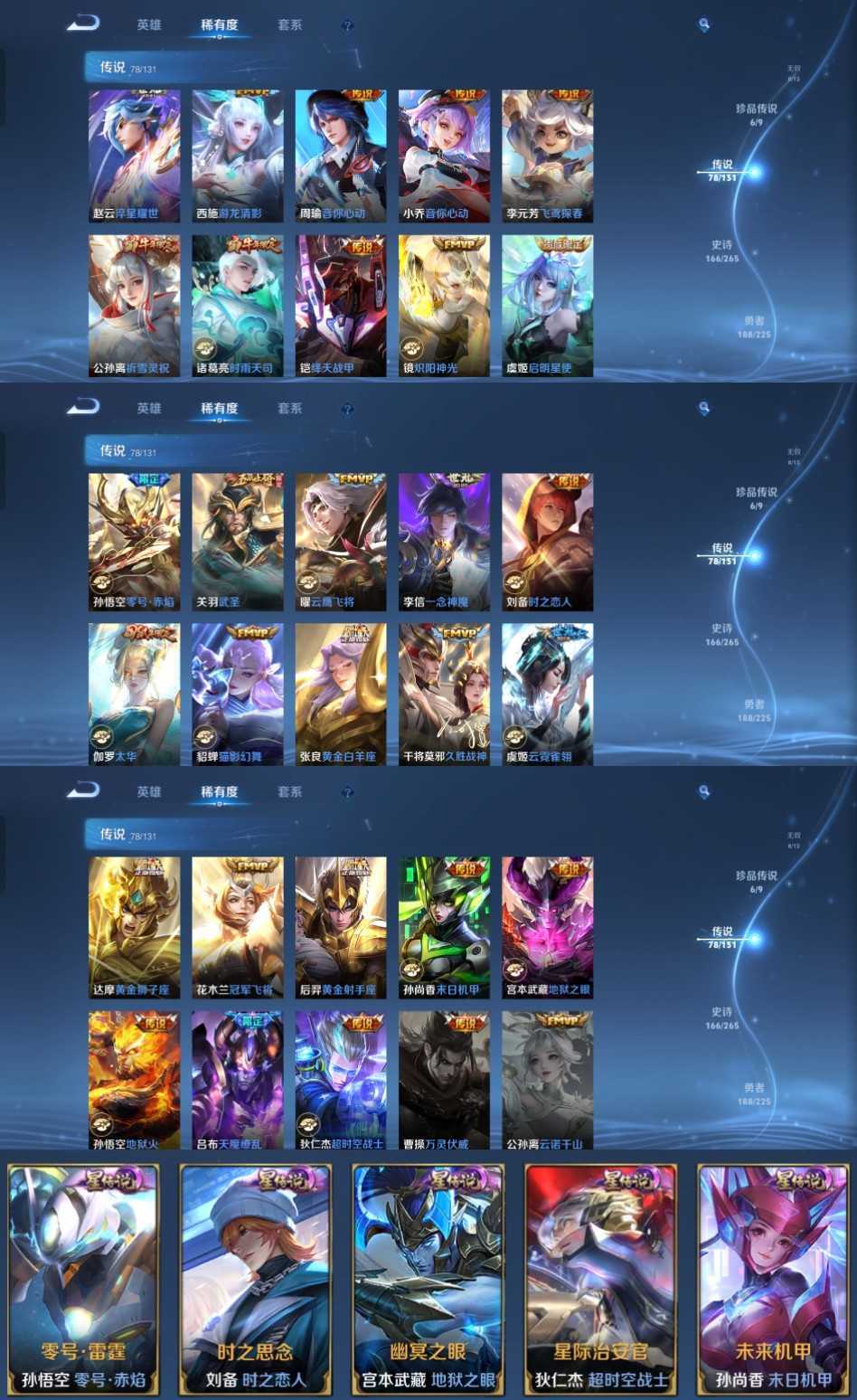 时间到了还登录白玩或者顶号全部改密拉黑处理永不解除,顶号机器会秒禁玩改密,顶号不仅拉黑还没得玩,赚三两块不容易,请理解谢谢。 ❤❤❤❤❤❤❤❤❤❤❤❤❤❤❤ 请勿开挂,挂机,送头,骂人,撤单后游戏等如有违规永久拉黑永不解除。 重置二级密码不要费劲了,号主每天都会上号查看,多行不义必自毙,人在做天在看,多做好事多自律,少做缺德事。 该号英雄127个皮肤533个,典藏6个,无双8个,珍品传说6个,星传说5个,传说79个,史诗166个,祝你游戏愉快~