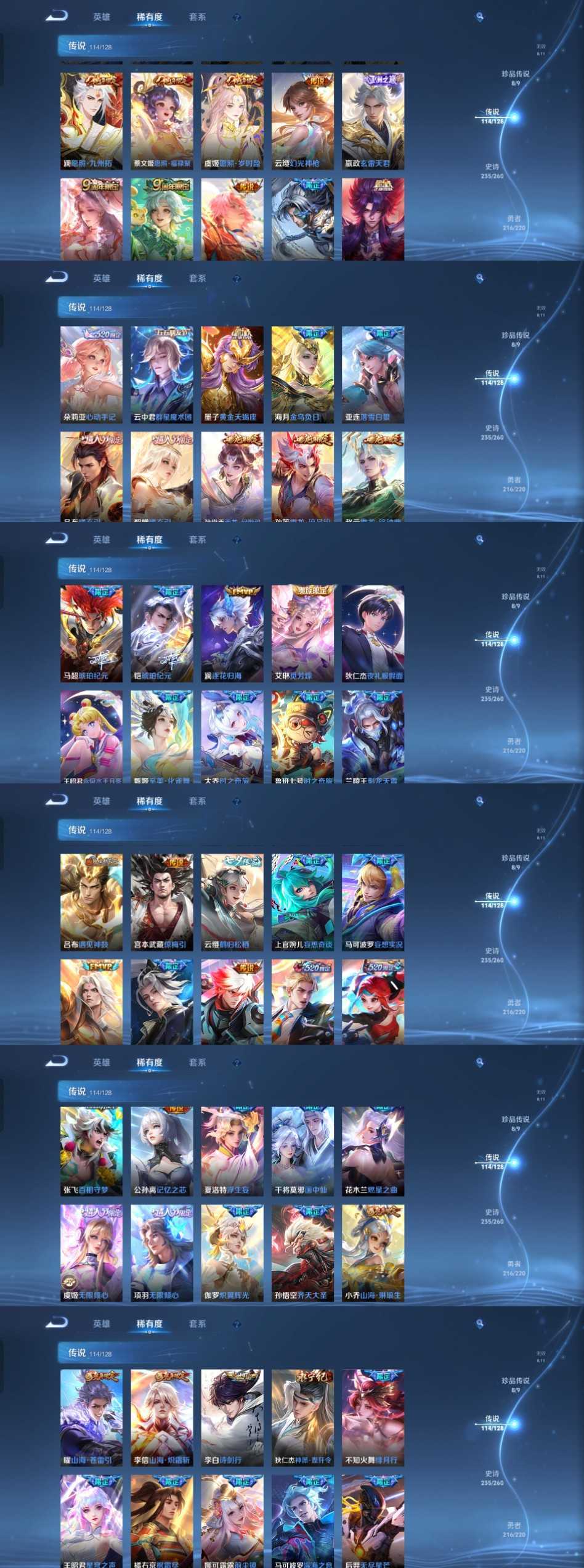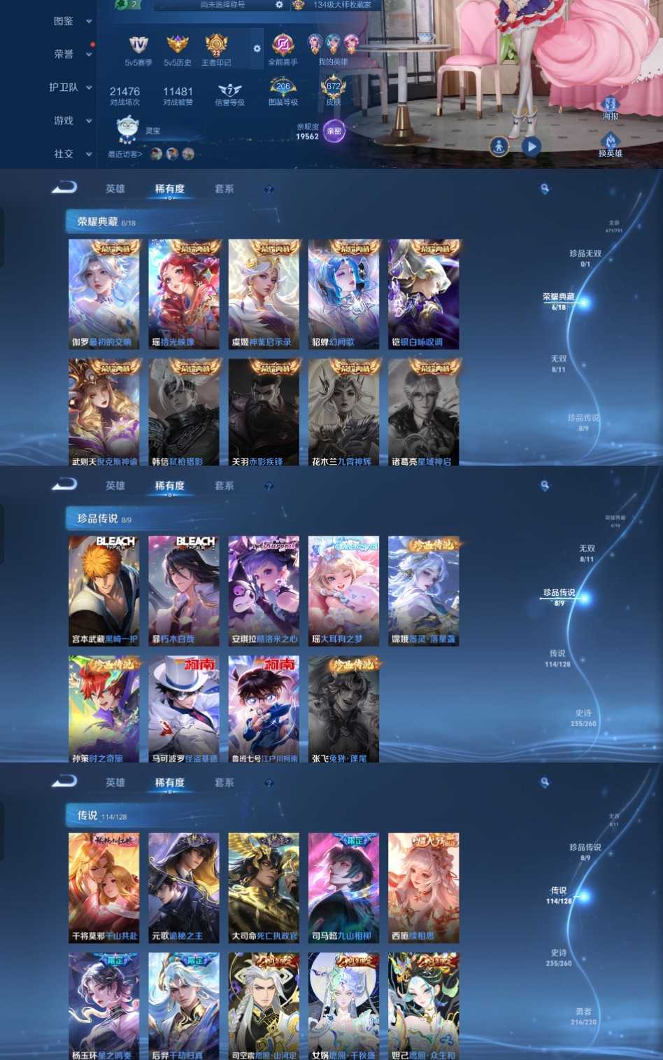 时间到了还登录白玩或者顶号全部改密拉黑处理永不解除,顶号机器会秒禁玩改密,顶号不仅拉黑还没得玩,赚三两块不容易,请理解谢谢。 ❤❤❤❤❤❤❤❤❤❤❤❤ 请勿开挂,挂机,送头,骂人,撤单后游戏等如有违规永久拉黑永不解除。 重置二级密码不要费劲了,号主每天都会上号查看,多行不义必自毙,人在做天在看,多做好事多自律,少做缺德事 该号英雄126个皮肤671个,典藏6个,无双9个,珍品传说8个,星传说10个,传说114个,史诗235个,祝你游戏愉快~
