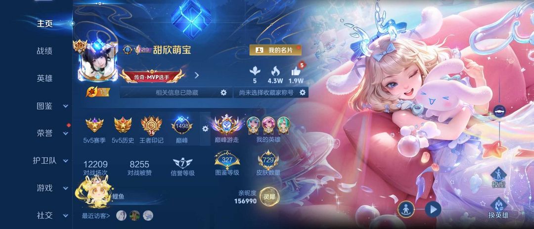 本游戏账号: V10 荣耀贵族用户,基础段位:最强王者,英雄多,皮肤多。典藏皮肤10个,感受典藏皮肤带来的优质体验快感,FMVP皮肤10个,尽情享受FMVP皮肤带来的主角光环, 私人所属英雄皮肤有:诸葛亮 星域神启||孙尚香 杀手不太冷||鲁班七号 星空梦想||芈月 大秦宣太后||夏侯惇 无限飓风号||李白 鸣剑·曳影||貂蝉 幻阙歌||花木兰 九霄神辉||虞姬 神鉴启示录||小乔 天鹅之梦,等等