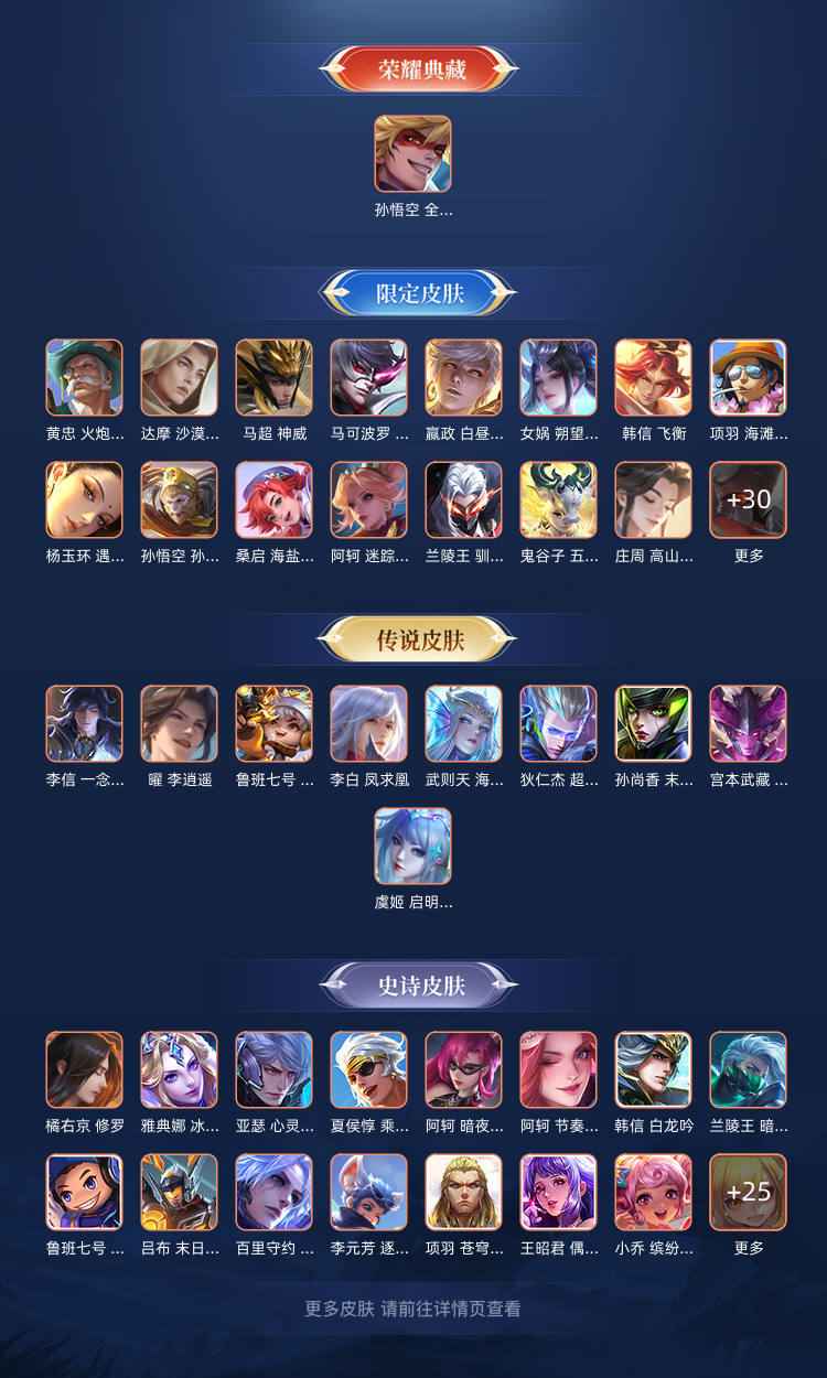 本游戏账号: ,基础段位:尊贵铂金II,英雄多,皮肤多。典藏皮肤1个,感受典藏皮肤带来的优质体验快感,FMVP皮肤1个,尽情享受FMVP皮肤带来的主角光环, 私人所属英雄皮肤有:孙悟空 全息碎影孙尚香 末日机甲||鲁班七号 寅虎·瑞焰||曜 李逍遥||宫本武藏 地狱之眼||李白 凤求凰||狄仁杰 超时空战士||武则天 海洋之心||虞姬 启明星使||李信 一念神魔,等等