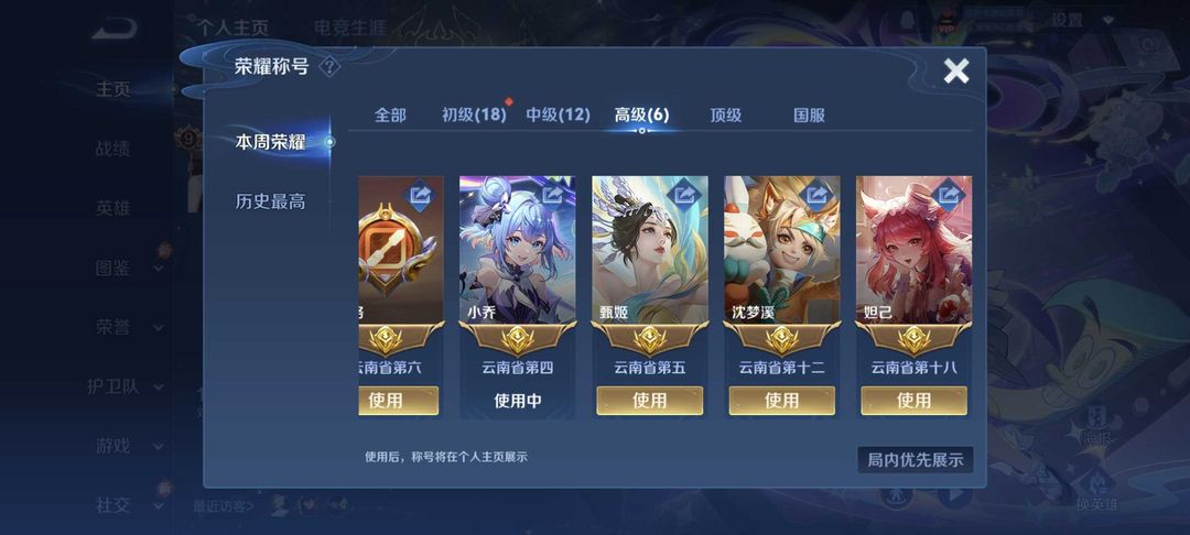 十月在榜省标小乔妲己甄姬⭐⭐历史国服西施大桥妲己⭐历史多国服71段中路⭐魔方亮