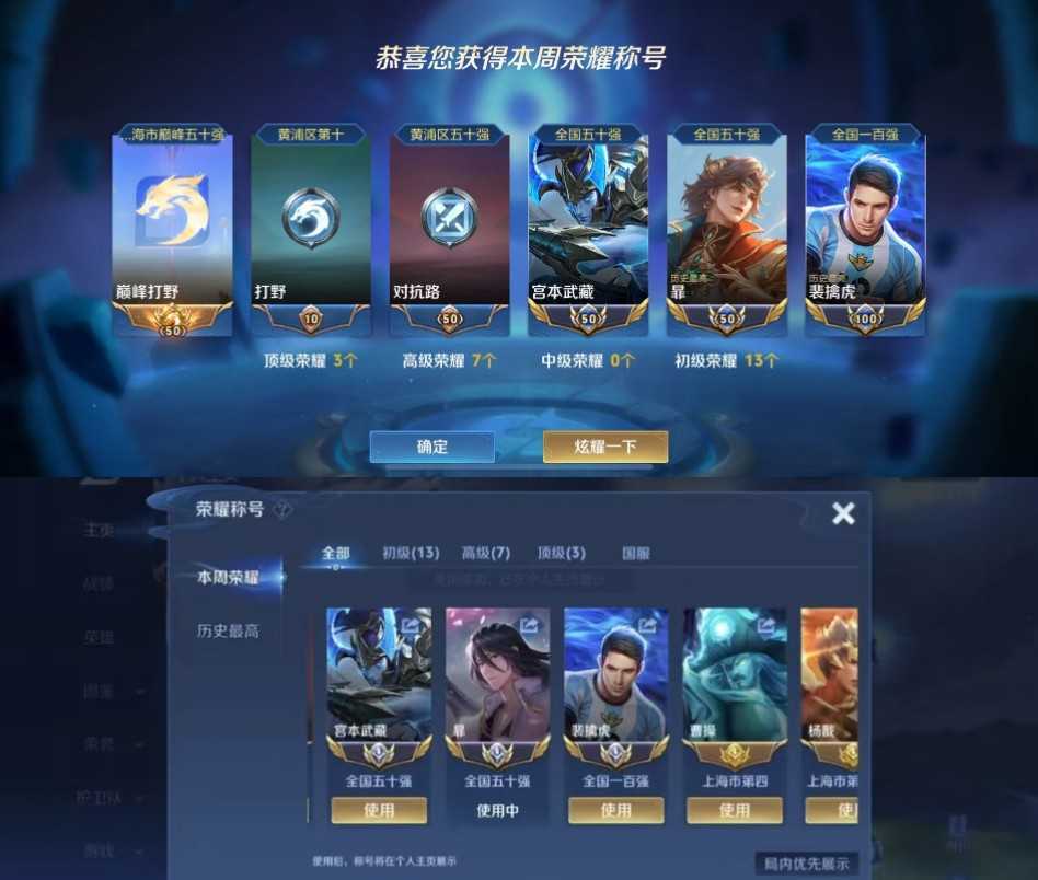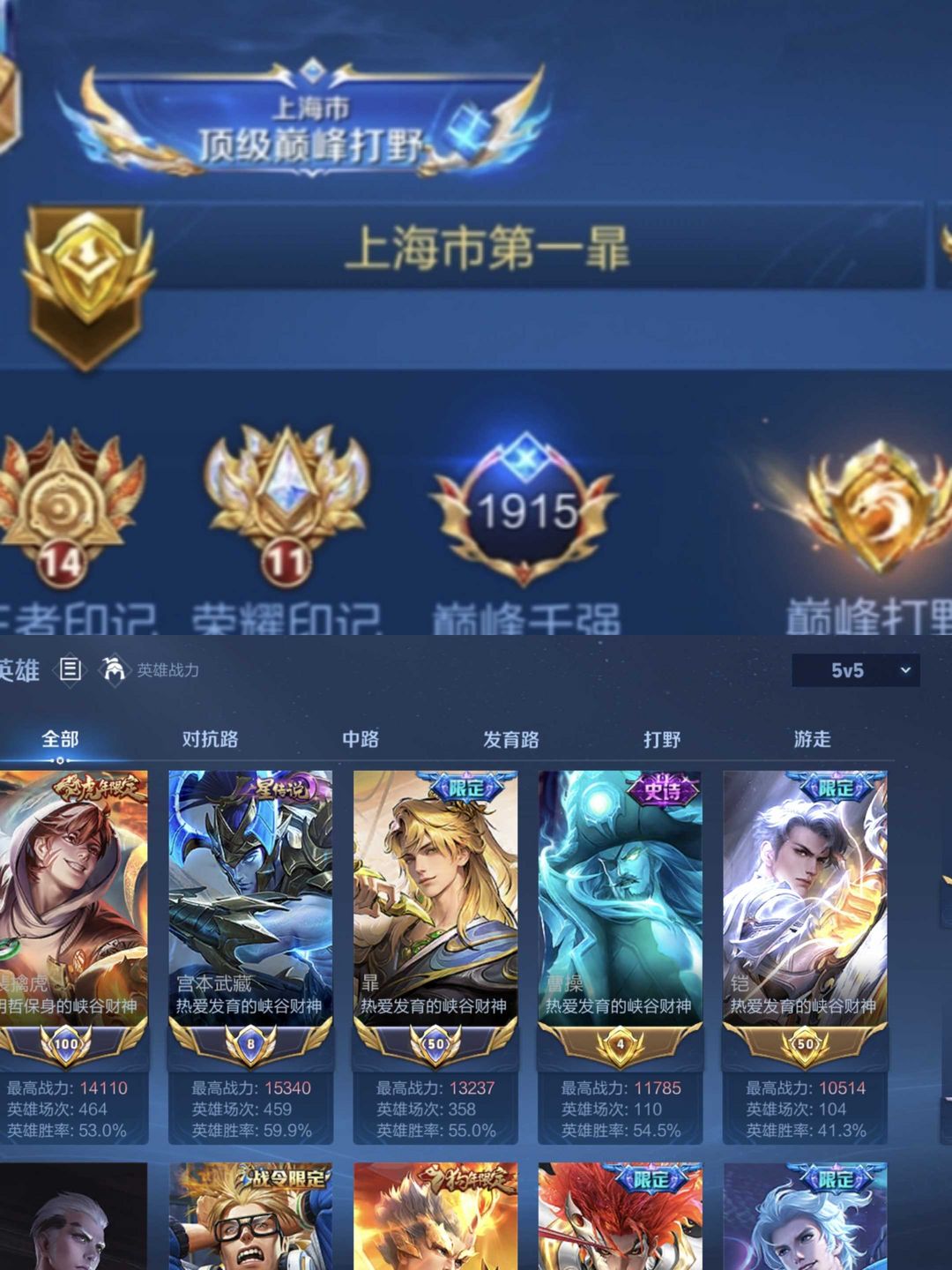iOS在榜近千强4省标省巅峰打野⚡️本周无小国省6宫本武藏省11多皮老虎暃省7暃省曹操 禁止巅峰赛