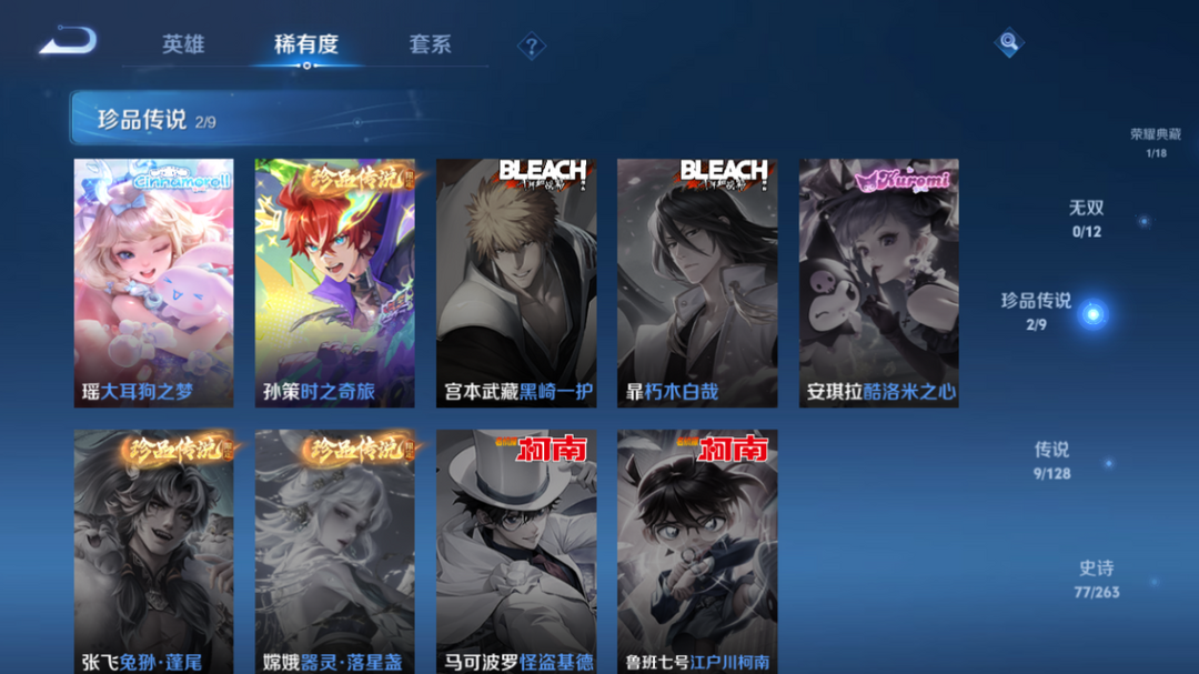269皮肤1典藏2珍品 鸣剑曳影 大耳狗之梦 时之奇旅孙策 愿照岁时盈 玄雷天君 霜北刀 惊梅引