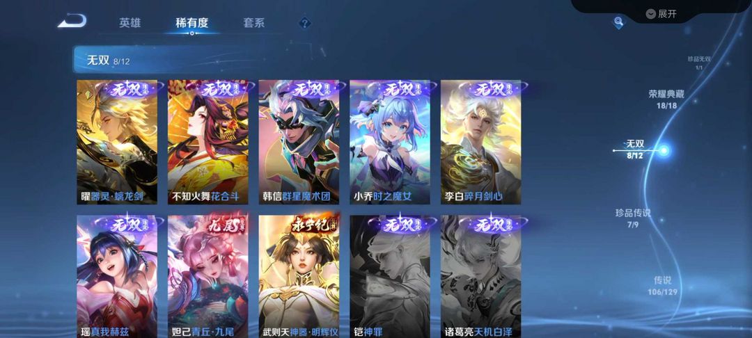不禁言V10❤貂蝉慕夏珍品无双❤国服貂蝉西施❤瑶大耳狗之梦安其拉酷洛米之蛇年限定❤满水晶8无双7珍品
