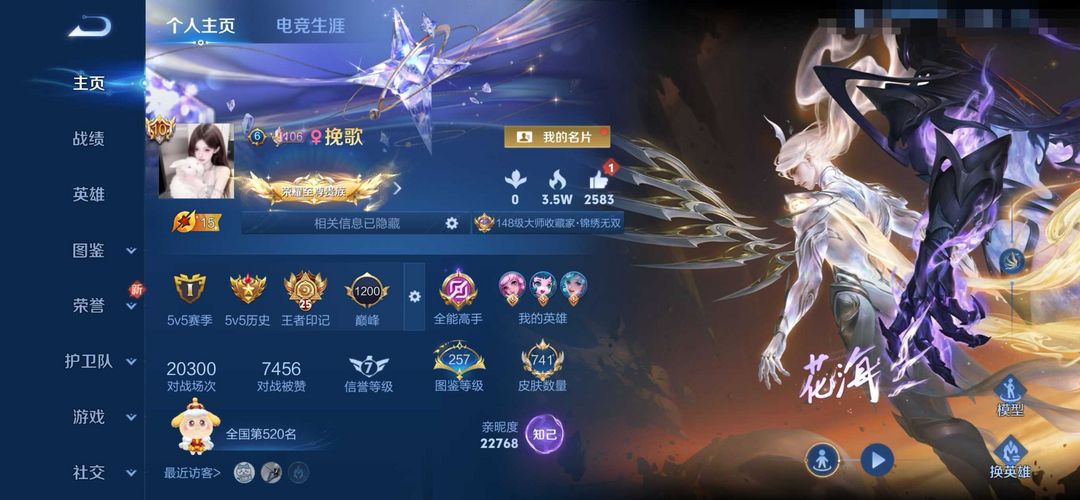 全满皮❤️荣耀v10不禁言❤️741皮满水晶满无双满珍品❤️铠-神罪❤️三小兵-狐妖/雪宝/露比