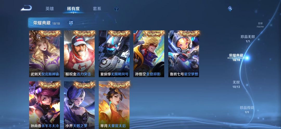 国服裴擒虎 19典藏10无双9珍品124传说貂蝉珍品无双绝版海外实名 国服裴擒虎 貂蝉珍品无双 实名: 可修改 贵族等级: V10 英雄数: 127 皮肤数: 722 荣耀水晶: 武则天,天鹅之梦,星空梦想,倪克斯神谕,无限飓风号,活力突击,杀手不太冷,大秦宣太后,鸣剑·曳影,全息碎影,星域神启,九霄神辉,赤影疾锋,银白咏叹调,幻阙歌,弑枪猎影,神鉴启示录,拾光映像,最初的交响 无双皮: 真我赫兹(瑶),神器·明辉仪,青丘·九尾,碎月剑心,小乔时之魔女,韩信群星魔术团,花合斗,离恨烟,雪境奇遇-甄姬,器灵·螭龙剑 珍品传说: 江户川柯南,怪盗基德,时之奇旅-孙策,器灵·落星盏,兔狲·蓬尾,酷洛米之心,大耳狗之梦,朽木白哉,黑崎一护 传说皮: 黄金狮子座,黄金射手座,冠军飞将,云鹰飞将,绛天战甲,黄金白羊座,猫影幻舞,久胜战神,炽阳神光,一念神魔,云霓雀翎,末日机甲-孙尚香,地狱火,仲夏夜之梦,音你心动-小乔,零号·赤焰,海洋之心,地狱之眼,飞鸢探春,音你心动-周瑜,胖达荣荣,李逍遥,乞巧织情,时之恋人-刘备,游龙清影,淬星耀世,超时空战士-狄仁杰,遇见胡