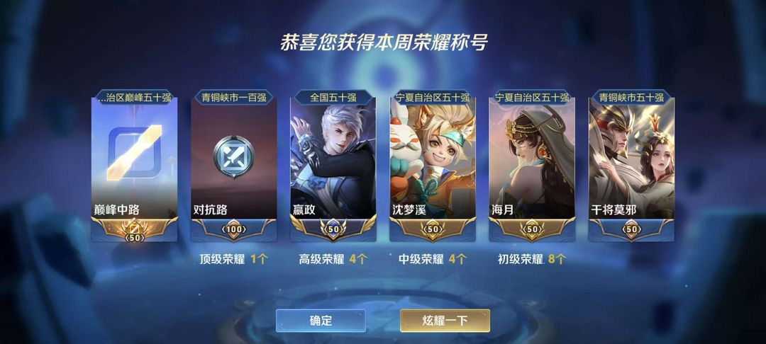 国标嬴政+省沈梦溪海月在榜/禁巅峰