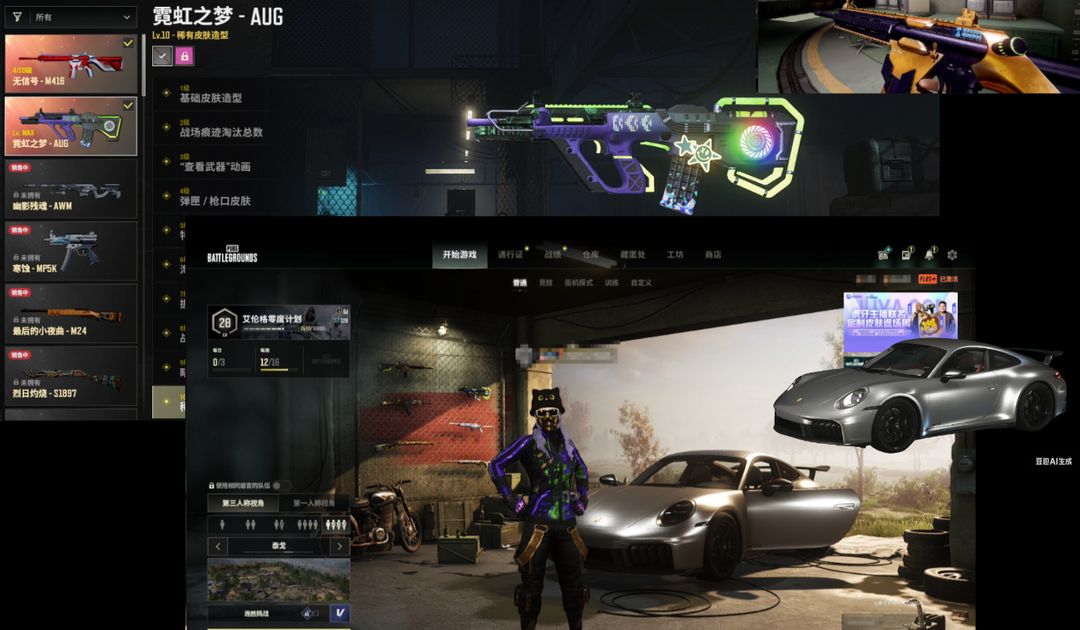 二级密码987654可排满级⑩级霓虹显卡AUG⚛️保时捷跑车新黄黑异色⑤无信号m4
