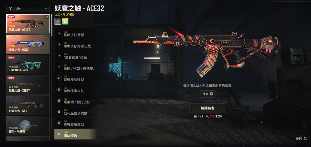 ④级妖魔之触ACE✅①级魔咒之力MK12✅暗影缠身AKM✅皇冠宝石M762✅完美角度98K✅猛虎猎手