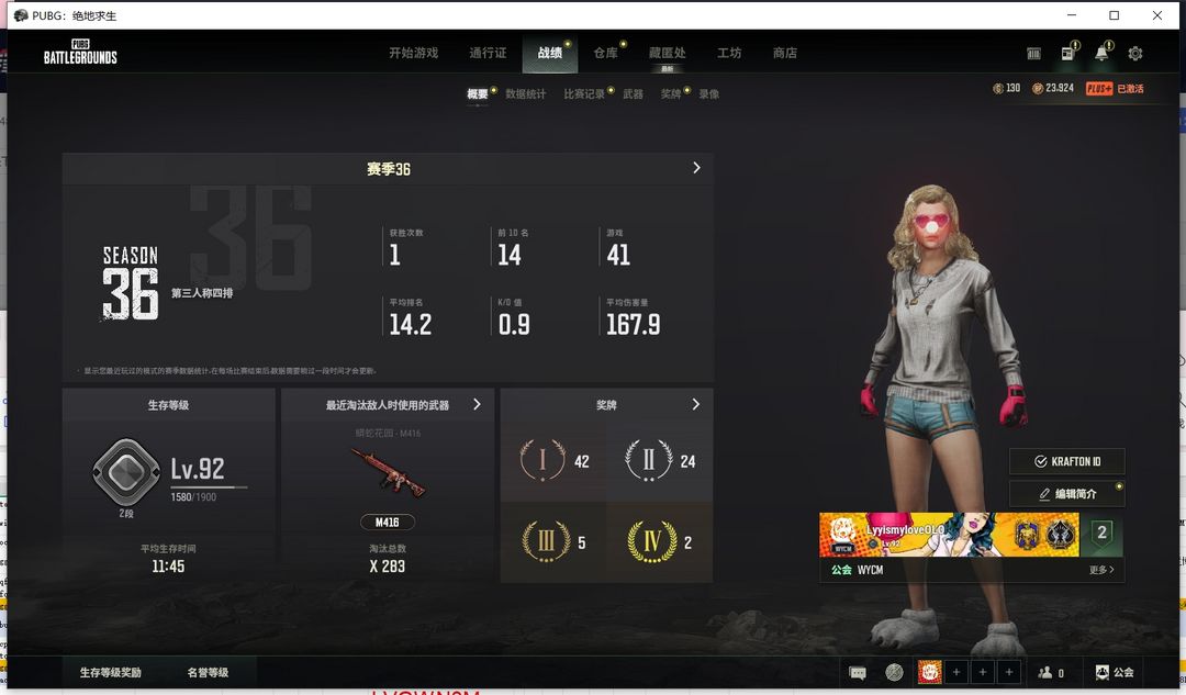 可排位✅成长型妖魔之触ACE✅权志龙M24蓝色烟雾弹✅双马尾✅AKM✅M4✅AKM✅M762✅98K