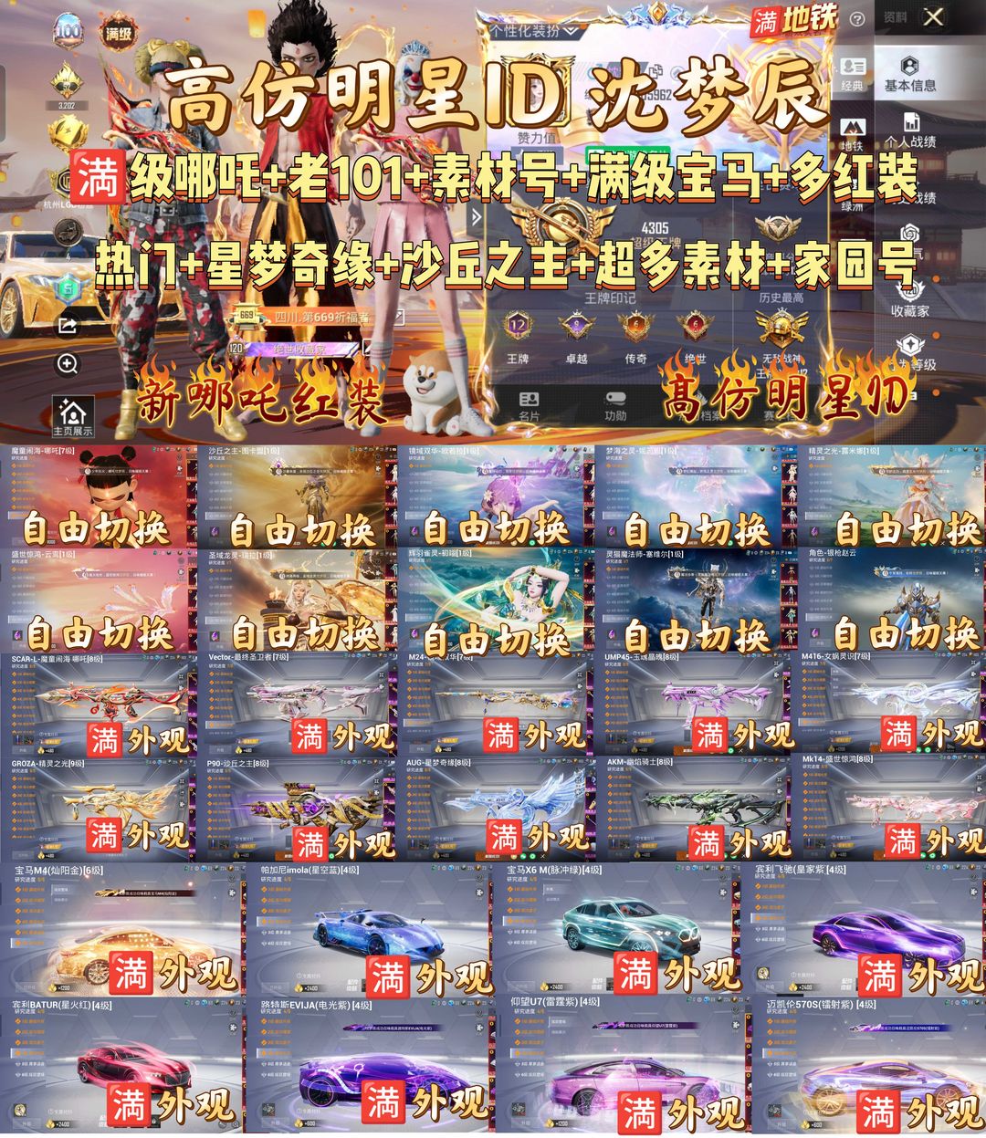 满级魔童闹海/老101/极品家园/宝马M4/幽焰骑士/星梦奇缘/帕加尼/热门家园