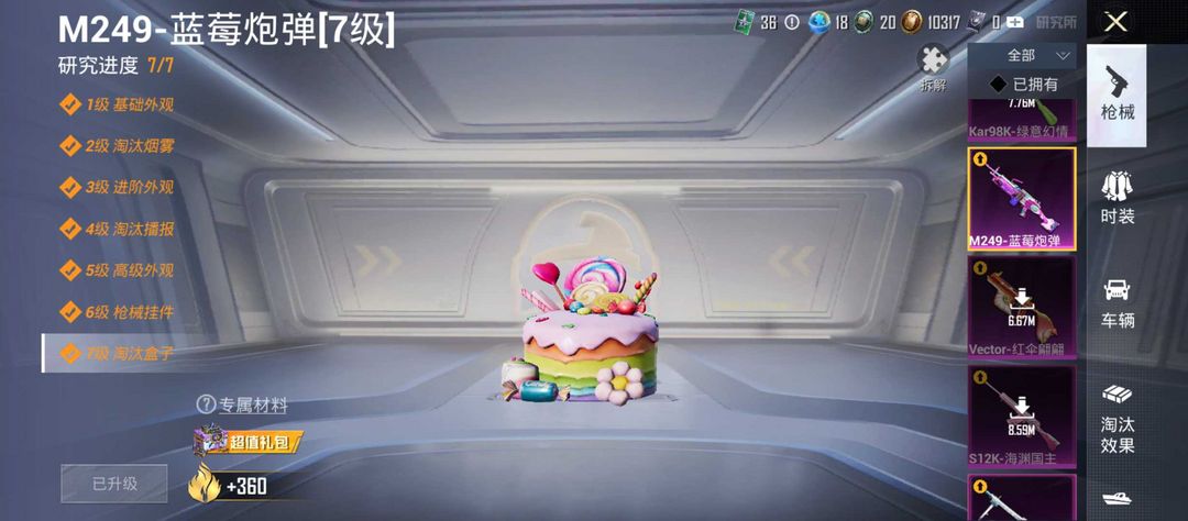 本游戏账号:特效枪数量15个,粉装数量31套,载具数量8个,优质装备有: M416-心之恋语, M249-蓝莓炮弹, AKM-环太平洋, AKM-霓虹街区, AKM-虎虎生威, AKM-彩虹符号, 套装-怪诞乔克, 套装-宝贝奶油派, 套装-天使彩虹糖, 套装-缤纷油彩, 套装-放客神游, 套装-馨动时刻, 套装-冰霜白皇, 套装-童趣迷兔, 甜心宝贝降落伞, 极限特训降落伞, 童趣迷兔降落伞, 星之彼岸降落伞, 风花雪月飞行器, 特斯拉Roadster(沁心粉), 童趣迷兔头盔(3级), 暗夜玫瑰头盔(3级), 甜蜜菠萝头盔(3级)等,供您畅选,感受良好游戏体验!