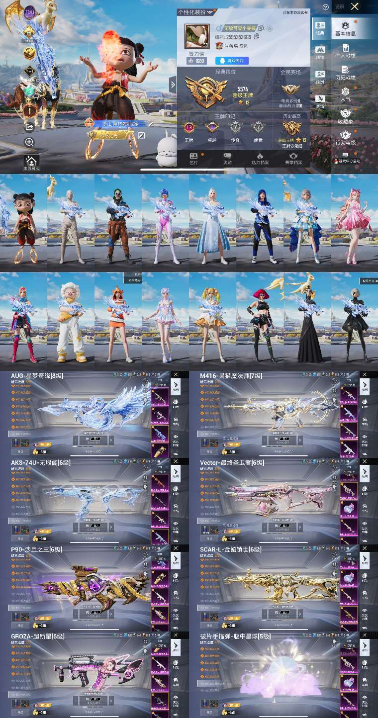 满级地铁天赋 红装哪吒 8级星梦aug 7级魔法师m4 6级无根阁AKS 6级最终守卫 6级金蛇scar 6级沙丘p90 6级超新行goza 木乃伊 小丑 都市 雪国 火箭 发光眼罩 战队服 洛天依 粉熊背包 童趣头盔 集结仓玉虚云仓 天猪飞行器 魔法师飞行器 圣灵龙宝僚机