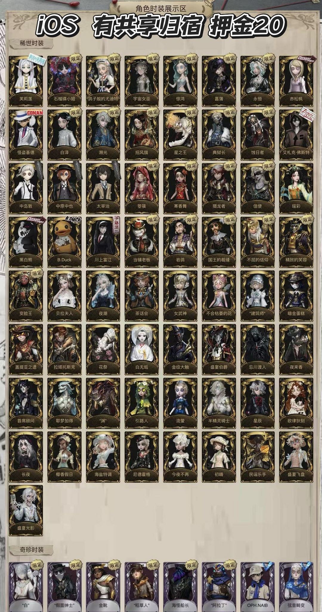 有共享/归宿 喧嚣/蚀日者/典狱长/扎克/文豪f3/先知“白”猎龙者/箜篌/寒香舞/鸽子