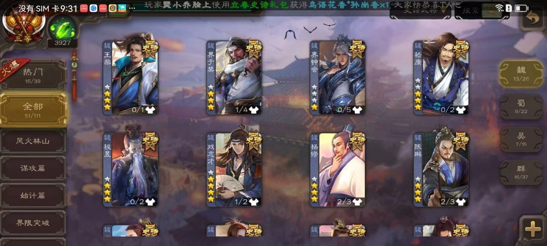 【有点将卡】大将军◆炎龙动刘焉◆炎龙动神甘宁◆十常侍◆裴秀◆界钟会53史诗界徐盛留赞神太史慈神赵云