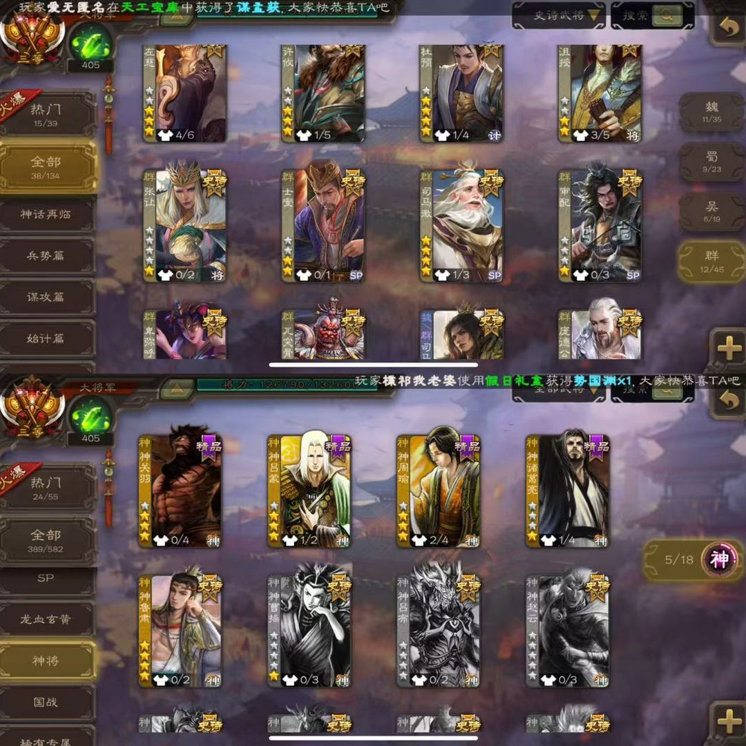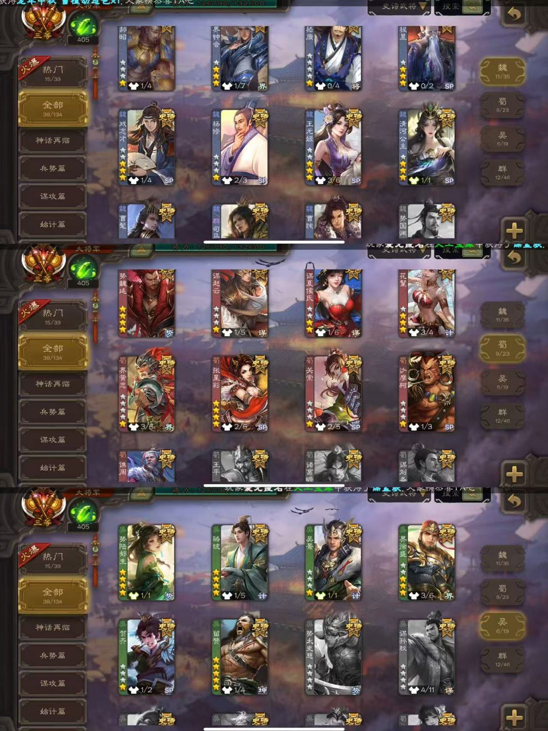 有卡38史诗大将军◆势魏延曹髦司马昭清河公主界徐盛杜预神鲁肃◆王元姬谋夏侯氏界钟会戏志才