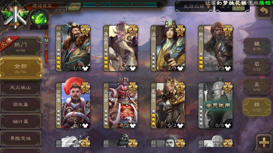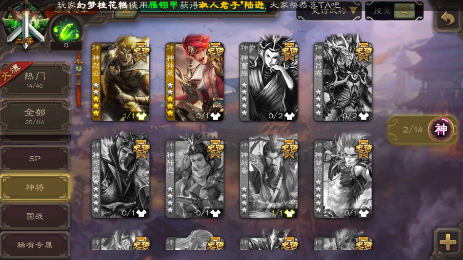 神赵云-界钟会◆动戏子◆界沮授◆张让◆麹义◆星黄忠◆南华老仙◆神太史慈