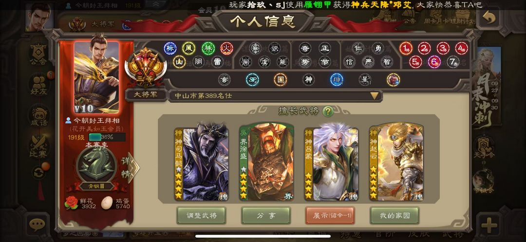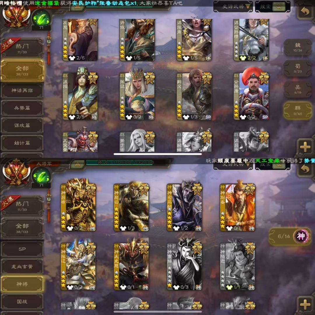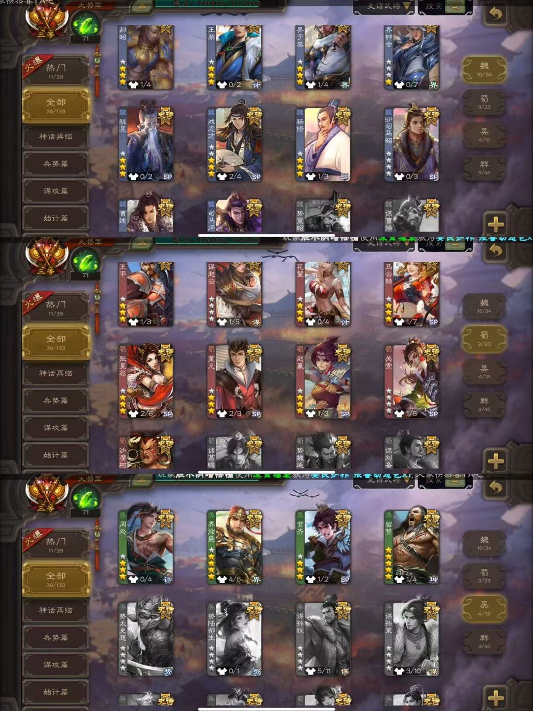 38史诗大将军✔神司马懿神太史慈神赵云界徐盛谋公孙瓒✔麹义沙摩柯界钟会戏志才