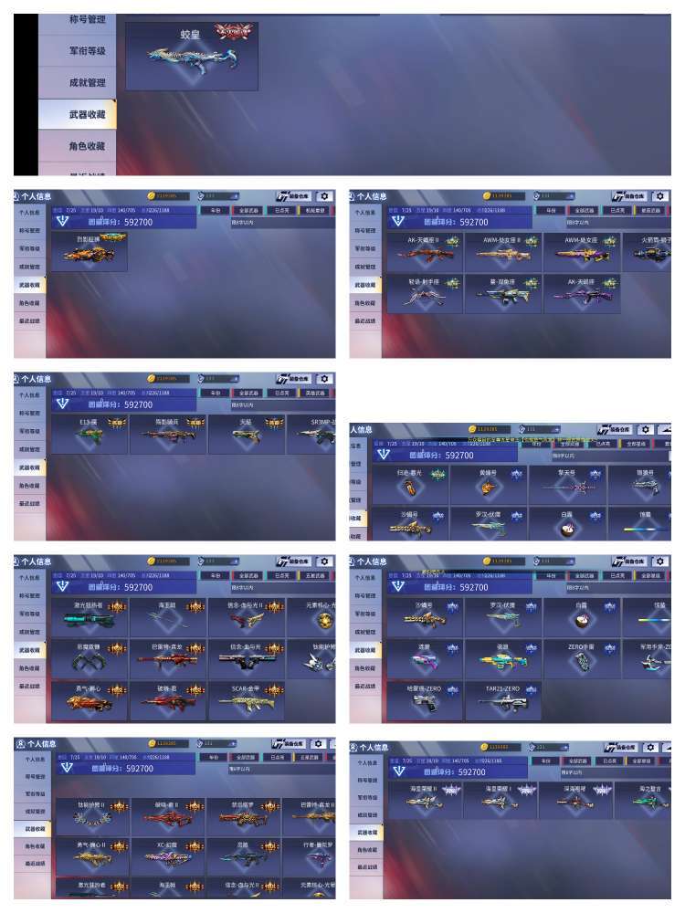 新不灭英魂 狂狮 二套爆破套装 星座 五星 精英 异彩 在图上可以看。