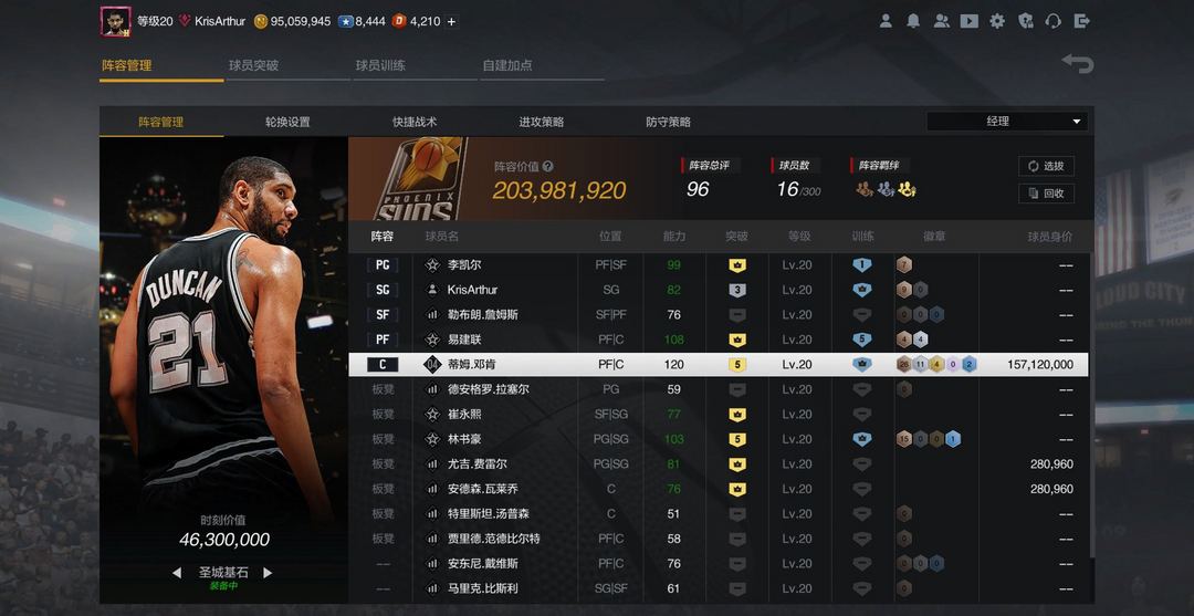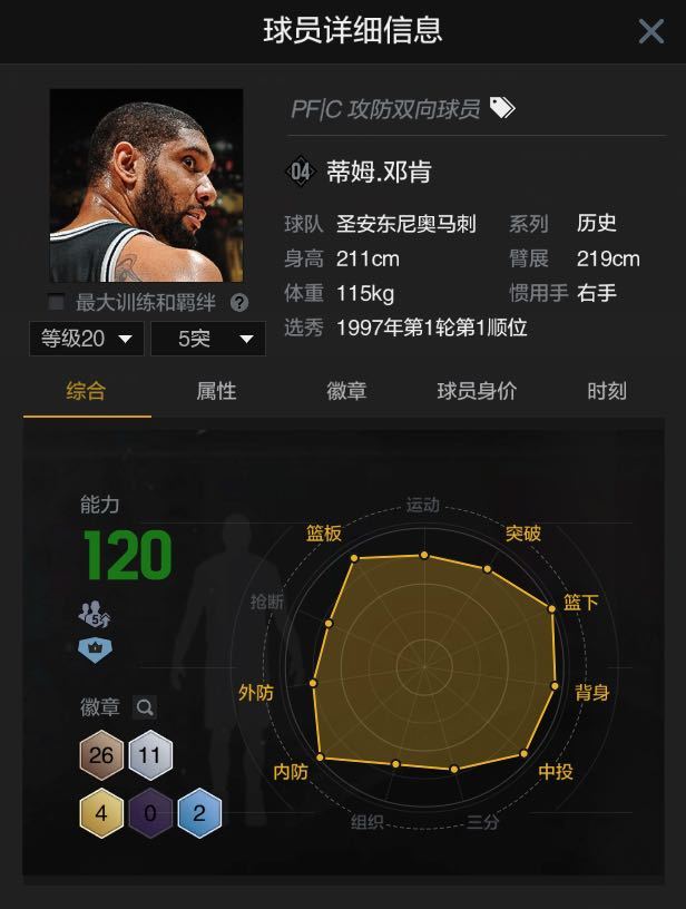 ⭐️可排位,段位:超巨⭐️5突小时刻04邓肯,最新陈列室,历史第一大前锋⭐️全能邓肯攻防一体⭐️