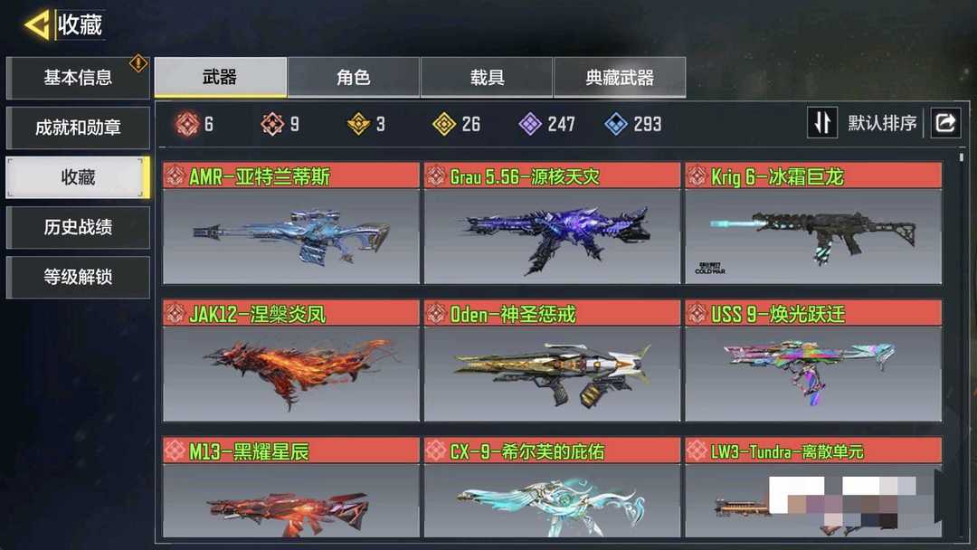 lv400.武器9神话6满阶3典藏26传说,角色1神话满阶,AMR-亚特兰蒂斯 Grau5.56-源核天灾 Krig 6-冰霜巨龙 JAK12-涅炎凤 Oden-神圣惩戒 USS 9-焕光跃迀 M13-黑耀星辰 CX-9-希尔芙的庇佑 LW3-Tundra-离散单元 详情看图